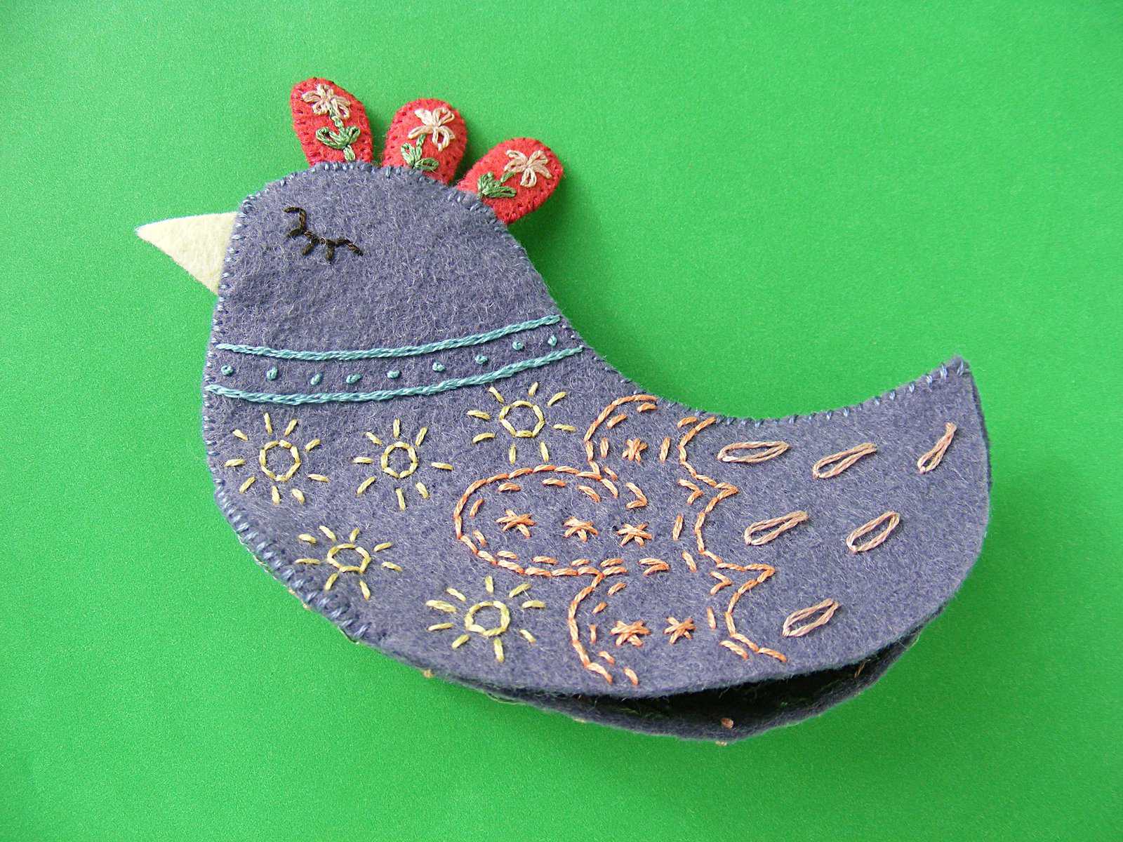 Isn’t she a beauty? I think this design would also be very pretty stitched up with a single color thread on a single color felt. White thread on this purple sage would be lovely! You’ll just have to make another. :)