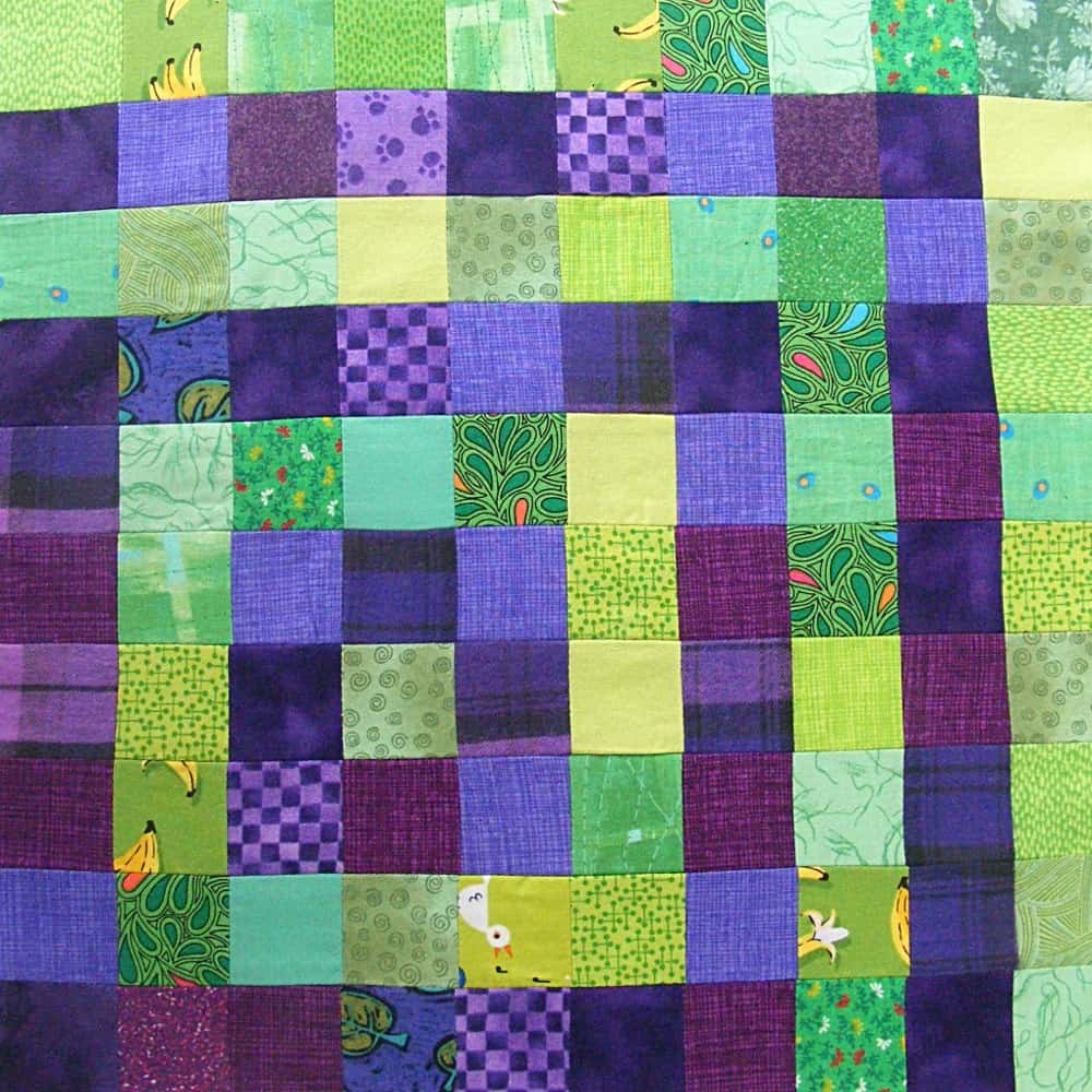 The reason Ann’s block didn’t feel stripey enough to her was because it had a range of shades in both color stripes and blue and green are right next to each other on the color wheel.